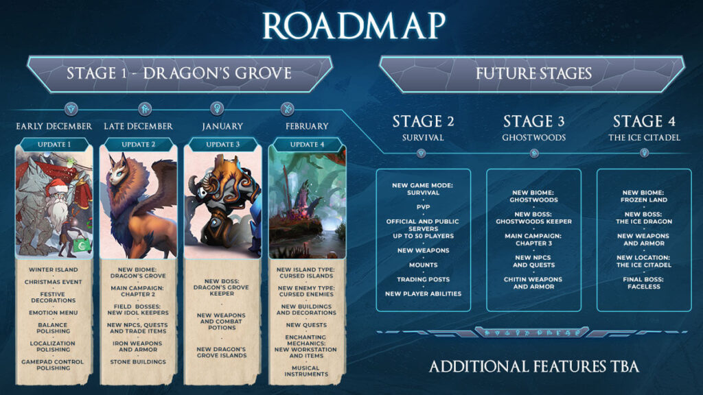 The January update will follow up on the content releasing next month by adding the Dragon’s Grove Keeper, the boss of the biome. There will be a few new smaller islands to explore around Dragon’s Grove and more weapons to discover.