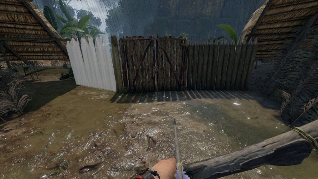 Lookout platforms are the last defensive structure to go over. This little platform looks like some rickety scaffolding and isn’t super tall, but it is just the right height to allow you to look over your palisade walls and defend your luscious jungle fort with your bow or spears in relative safety.