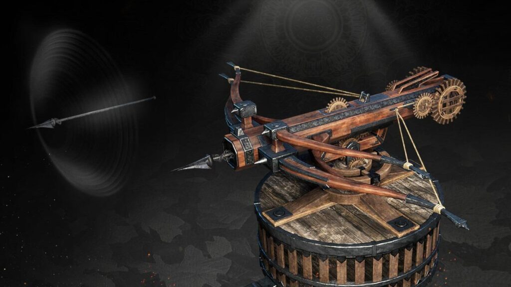 New base defenses will be available to play around with like the chain ballista, a powerful weapon that can shoot big bolts that rotate fast and from like a large umbrella that can stop incoming attacks. It can be powered by animals like pigs and wolves that run in a large power-generating cage.