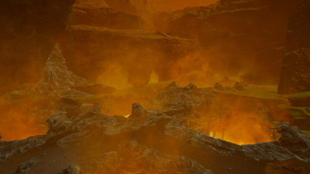 While the story starts out the same, you are a convict who is sent to this planet by Sentinal Corp with the goal of making this world inhabitable for humans. Where it changes is instead of uncovering remains from an ancient alien civilization, you find broken machines everywhere from a robotics company that rivals Sentinal Corp. Planet Humble is split up into a few large areas, a frozen cavern, a volcanic region, and in between where you find a lot of sand. While exploring these locations, you uncover what the robotics company was doing on this planet and why they no longer own the planet.